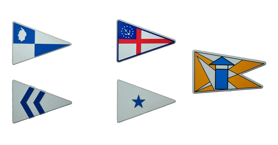 Adhesive-backed plastic burgee for the back of your car: 3” x 2″. Minimum quantity 125.