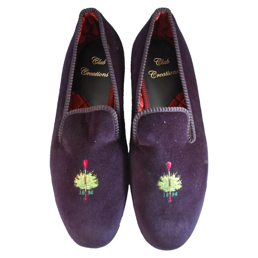 Hand-made and hand embroidered in England. Available in both Men’s and Women’s styles with a choice of either a hard or soft sole.