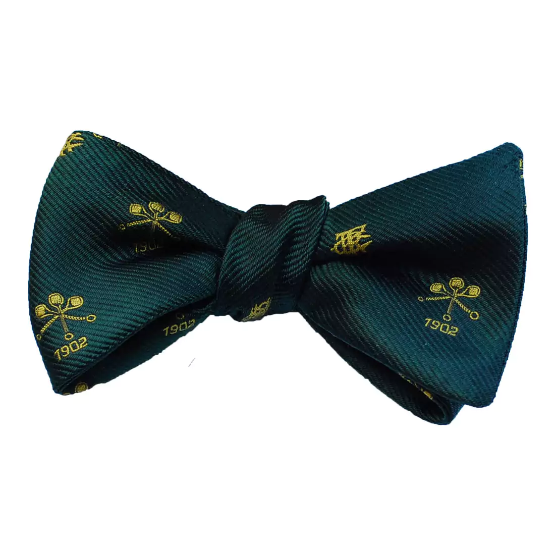 Butterfly style logoed bow tie in 100% English woven silk. Logos can be sized and spaced to your liking. Available in straight bow tie version as well. Minimum quantity 60.